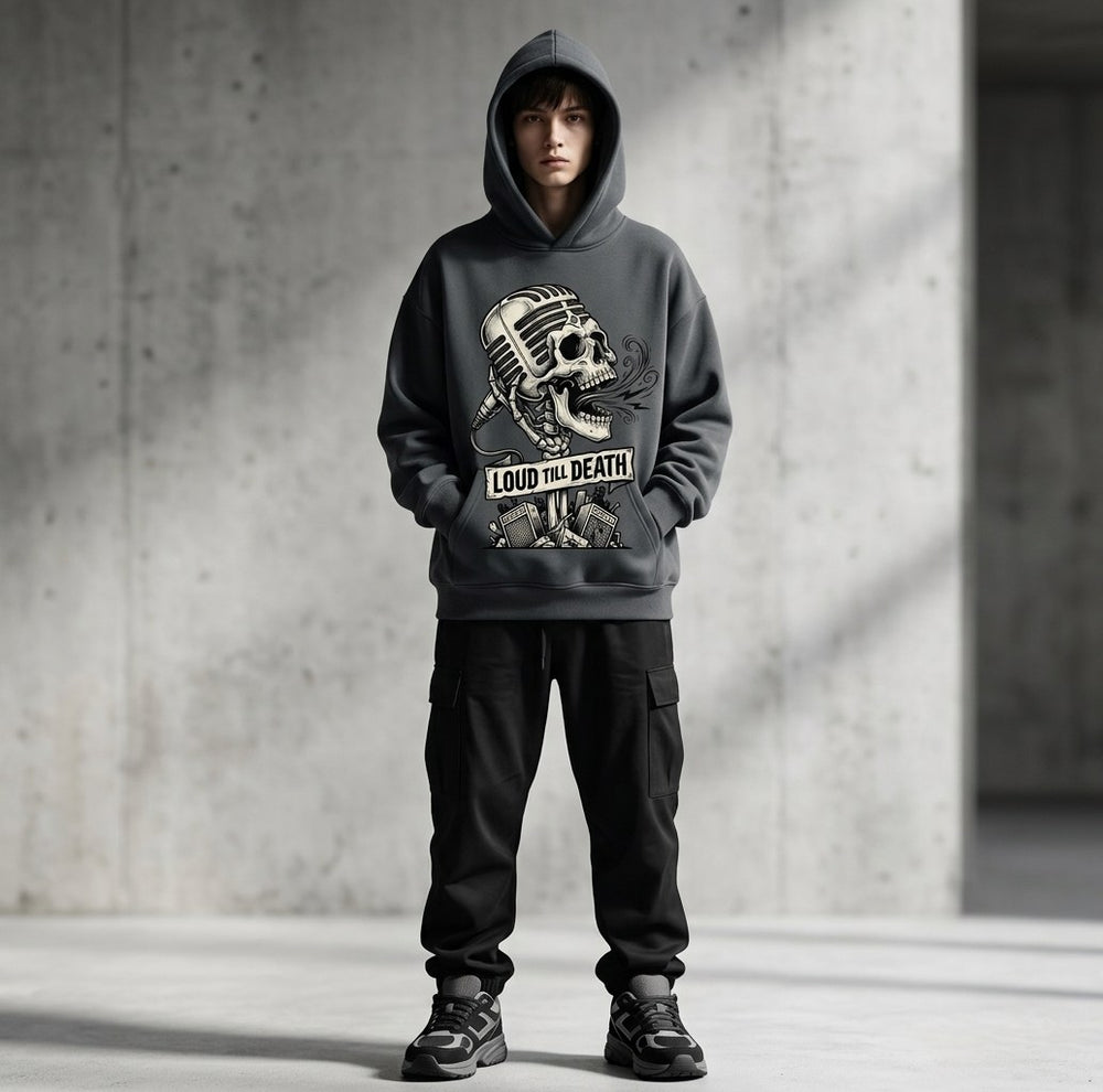 For those who live and breathe heavy metal, the 'Loud Till Death' skull design is your ultimate anthem.